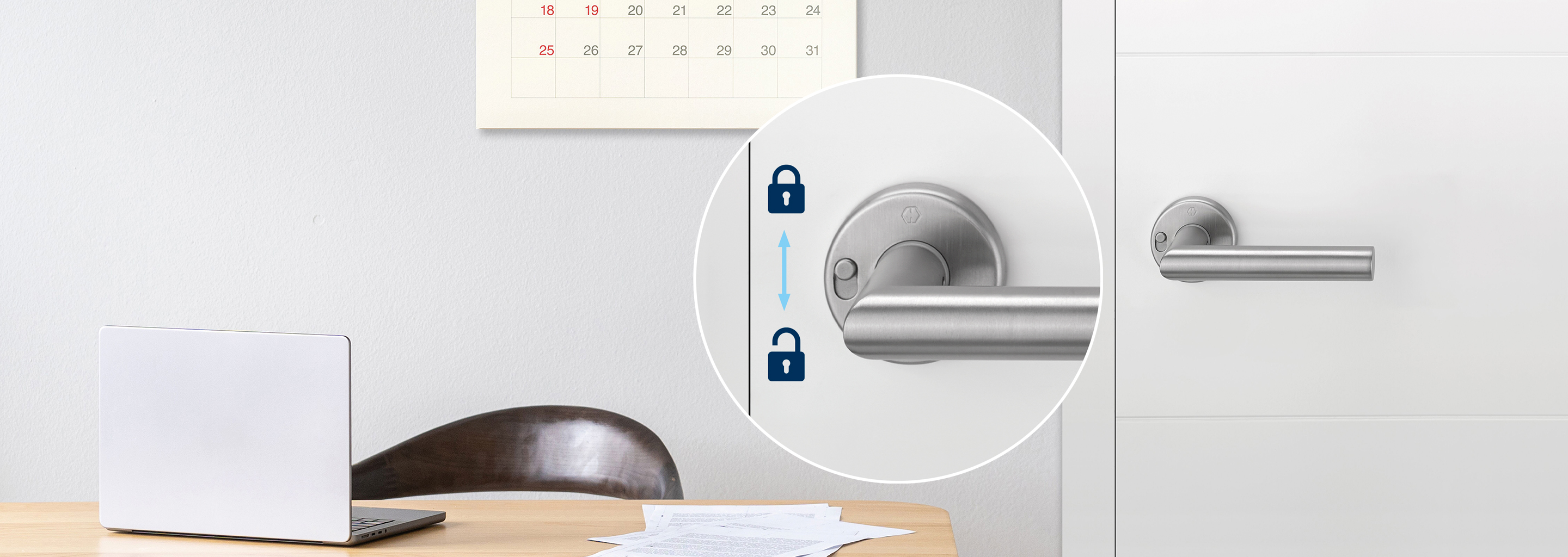 MiniLock bietet eine praktische und dezente Lösung, um Innentüren ohne Schlüsselloch-Bohrung von innen zu verriegeln und so für Privatsphäre zu sorgen. Die Technik ist dezent in die Rosette integriert und in vielen Serien mit umfangreicher Oberflächen-Auswahl erhältlich. Die Montage erfolgt unkompliziert mit nur wenigen Handgriffen.