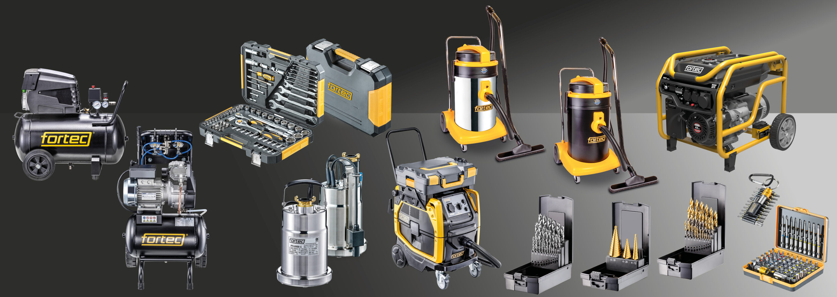 Avec un large assortiment d'outils de haute qualité, Fortec couvre tous les besoins de l'artisan professionnel et du bricoleur engagé. Des pompes, de la technique à air comprimé, des aspirateurs industriels jusqu'à un assortiment d'outils à main, Fortec présente un Portfolio complet. Avec son design moderne et sa présence constante auprès des utilisateurs, Fortec est une marque qui a le vent en poupe. Le siège suisse de l'entreprise et l'équipe créative et compétente qui se trouve derrière la marque garantissent la volonté de se développer et d'élargir constamment l'assortiment. L'identification des besoins et l'amélioration des produits existants font de Fortec une marque importante dans tous les domaines d'application de l'artisanat. Du mécanicien au bricoleur en passant par le collaborateur d'entretien, tous trouvent l'outil qui leur convient. Les amateurs de bricolage profitent également de la qualité de la marque Fortec.